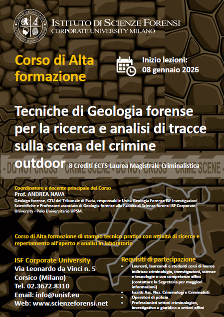 Corso di Alta formazione Tecniche di Geologia forense per la ricerca e analisi di tracce sulla scena del crimine outdoor